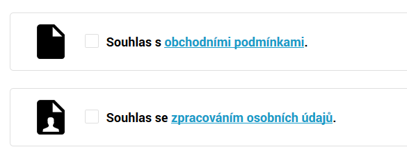 Systém e-shopu už sám rozmístí souhlasy tam, kde jsou ze zákona před odesláním formuláře vyžadovány, viz odstavec výše.