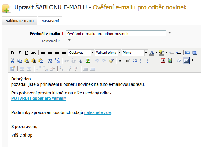 Od 25. 5. 2018 budete muset umět prokázat, že daný email udělil souhlas se zasíláním novinek. Pro tyto účely jsme udělali úpravy v systému, které požadují po zákazníkovi „odkliknutí“ souhlasu se zasíláním novinek v emailu, který se mu zašle když se k zasílání novinek přihlásí.